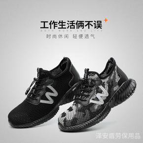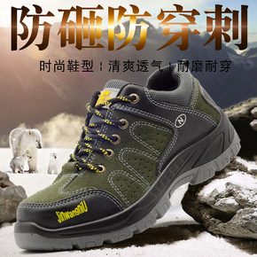 夏季登山劳保鞋男透气网布防滑钢包头防砸安全鞋防砸防...