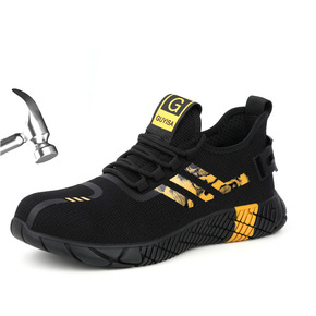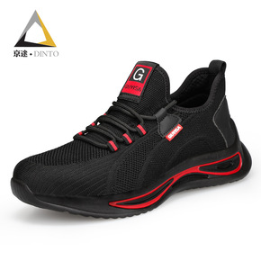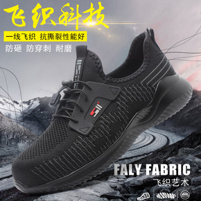 跨境新款劳保鞋防砸防刺钢包头pu大底轻便飞织透气劳...
