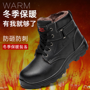 现货供应冬季加绒劳保鞋男高帮棉鞋 保暖防寒防滑钢头...