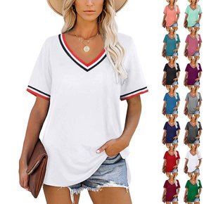 亚马逊ebay欧美女装2021初秋新款休闲上衣V领...