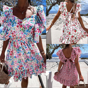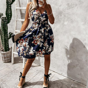 2021跨境亚马逊wish夏季吊带裹胸镂空系带印花...