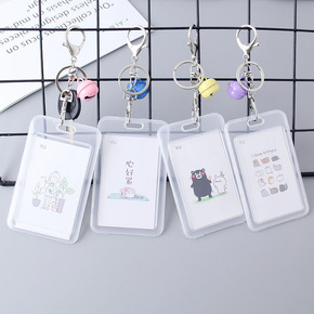 卡通可爱透明公交卡套钥匙扣彩铃铛龙虾扣挂件学生校园...