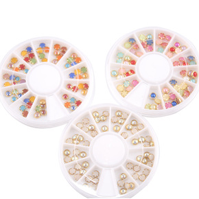 2014新品 纯白色贴钻美甲合金饰品 彩色半圆珍珠...