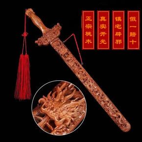正宗桃木剑镇宅辟邪风水挂件天然木雕儿童镂空剑家居装...
