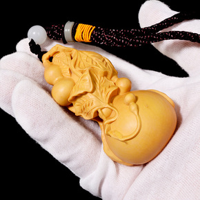 小叶黄杨木雕手把件葫芦汽车挂件文玩实木雕刻工艺品把...