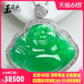 金镶钻 缅甸冰种辣绿翡翠佛公吊坠女笑佛弥勒佛KDZ...