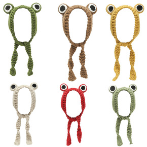 青蛙头带手工毛线针织帽女冬天保暖甜美可爱耳帽ins...