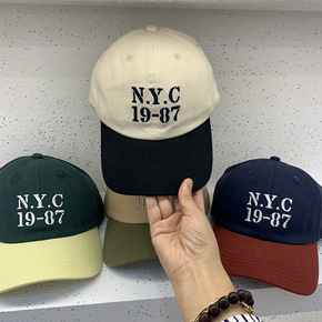 2021秋款渔夫帽男女同款复古老花刺绣休闲时尚NY...