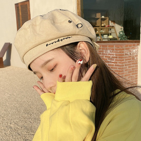 韩版出游贝雷帽女秋季薄款日系钉扣镂空气质优雅画家帽...