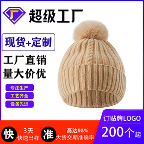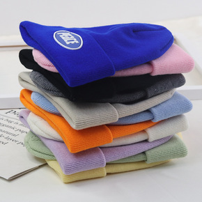 毛线帽 纯色贴标定制LOGO针织帽子 秋冬女户外保...