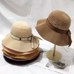帽子女韩版百搭透气大檐帽蝴蝶结沙滩防晒帽遮脸太阳帽...