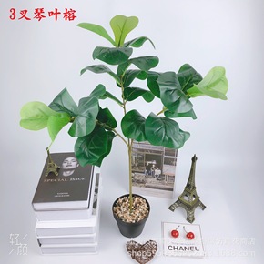 仿真绿植3叉琴叶榕盆栽植物 网红ins室内客厅绿植...