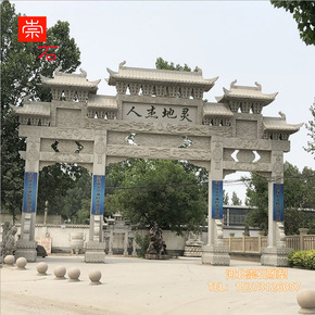 石雕牌坊门楼古建石牌楼村口景区雕塑三门五楼入口园林...
