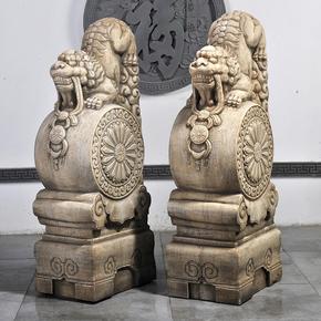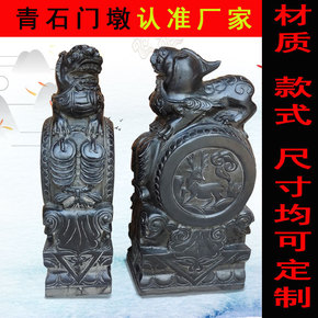 石雕门墩一对家用镇宅狮子麒麟貔貅青石仿古做旧石鼓门...