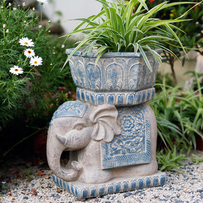大象石墩花盆底座中式庭院入户门花园仿石雕一对阳台布...
