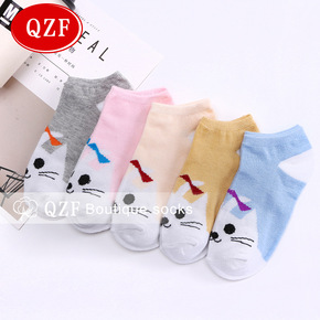 卡通可爱隐形袜 白猫透气涤棉女船袜 独立包装女士短...