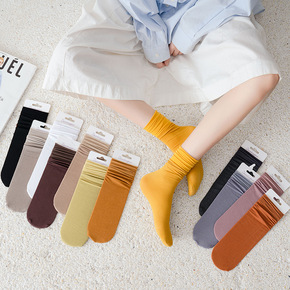 袜子女春夏季薄款女袜纯色日系提花芦荟棉中筒堆堆袜i...