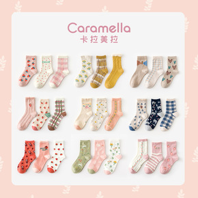 caramella袜子女秋冬中筒袜新疆棉女袜潮袜女...