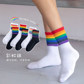 厂家定做新款潮流休闲袜学生袜子纯棉男女中筒袜吸汗透...