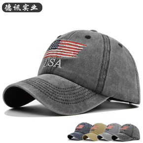 跨境欧美水洗做旧美国棒球帽刺绣鸭舌帽USA绣花棒球...