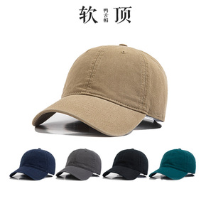 春夏新款水洗棉纯色日系棒球帽ins男女卡其色韩版软...