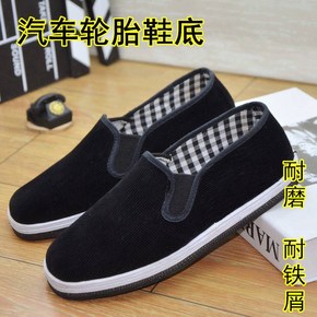 轮胎底布鞋男灯芯绒面耐磨加厚千层底男鞋防铁屑防刺穿...