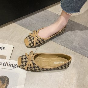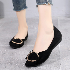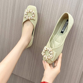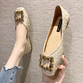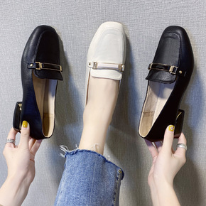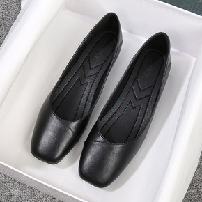 2020夏季新款透气女鞋黑色大码浅口方头奶奶鞋平底...