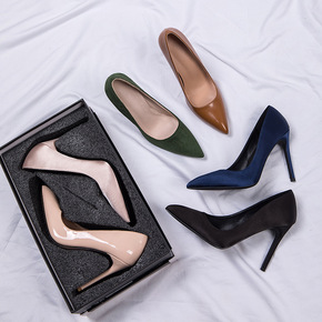 高跟鞋女2021春夏新款绸缎黑色礼仪职业工作鞋尖头...