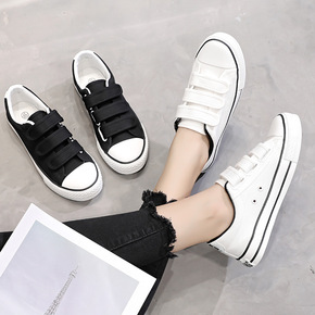 帆布鞋男女通穿不用系鞋带的小白鞋粘贴无带魔力贴学生...