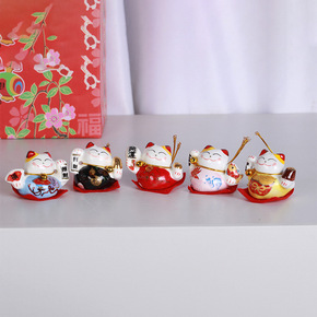 招财猫陶瓷摆件汽车五福临门 店铺收银台开业促销实用...