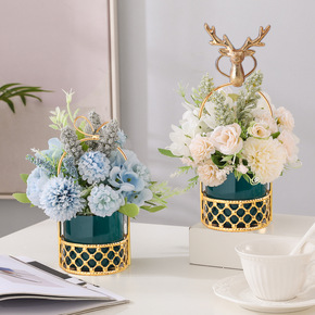 铁艺花瓶假花仿真花摆件家居装饰小花篮桌面摆花客厅玄...