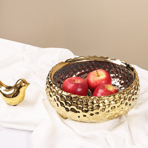 北欧圆形陶瓷花盆现代家居创意桌面装饰摆件电镀金色花...