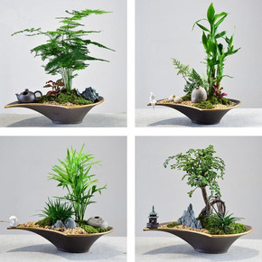 绿植花器透气粗陶陶瓷花盆紫砂室内盆景组合桌面多肉植...