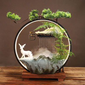 新中式迎客松盆景禅意工艺品摆件家居酒店办公室仿真绿...