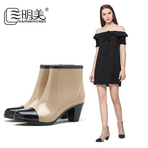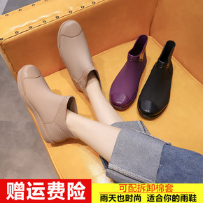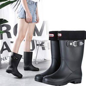 新款纯色中筒雨鞋女式时尚保暖水鞋韩版雨靴女加棉套鞋...