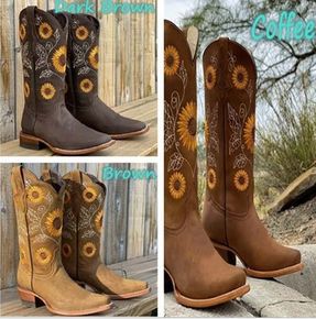 骑士靴外贸大码女靴秋冬短靴新款女式皮靴中筒靴刺绣欧...