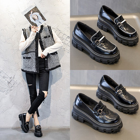 跨境外贸老爹鞋女新款韩版皮面单鞋佰搭厚底 原宿风运...