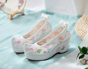 悠然2020夏秋季新款绣花鞋高跟牛筋软底复古绣花鞋...