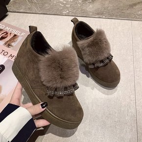 风格:休闲 流行元素:松糕跟、交叉绑带、拼色 鞋头形状:圆头 鞋面材质:绒面 皮质特征:牛二...