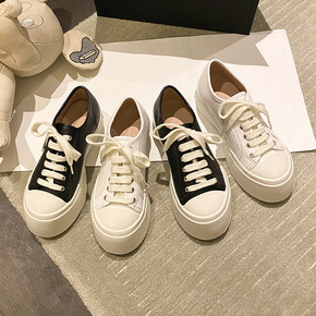 全牛皮~MONA同款大头鞋真皮松糕厚底小白鞋女圆头...