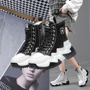 真皮马丁靴小白鞋女2021季秋新款爆款百搭轻便厚底...
