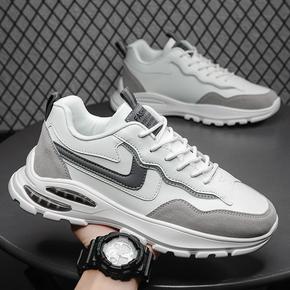 2022年新款男鞋夏季透气运动休闲跑步板鞋潮流皮面...