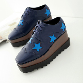 新款厚底松糕鞋春秋星星款单鞋方头内增高坡跟学生鞋...