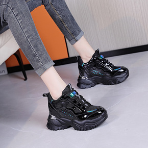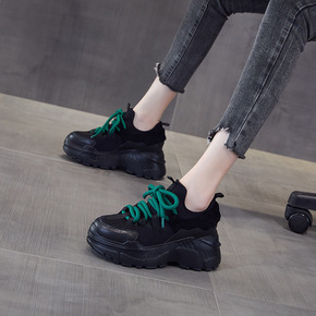 内增高老爹鞋女ins潮鞋2020秋冬新款加绒黑色休...