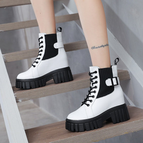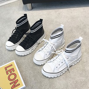 高帮鞋女2021秋冬新款韩版百搭增高针织短靴子时尚...