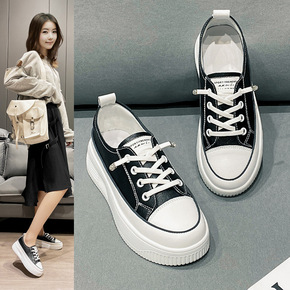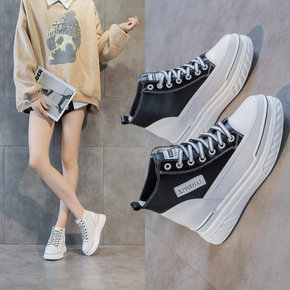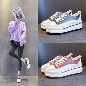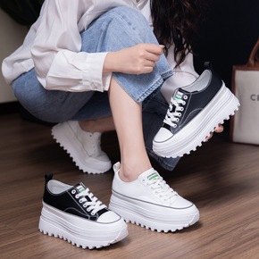 小白鞋女2021年春秋季新款厚底松糕内增高学生系带...