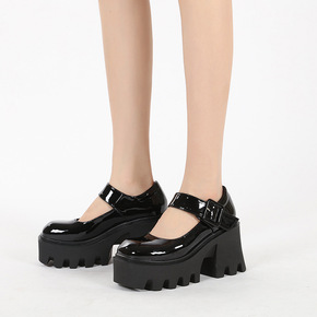 流行元素:车缝线、内增高、皮革拼接、皮带装饰、粗跟、松糕跟、金属、防水台 鞋头形状:圆头 货...