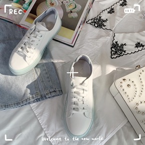 现货全牛皮麦昆情侣款小白鞋女2021春季新款韩版增...