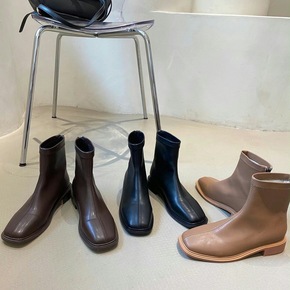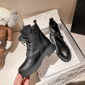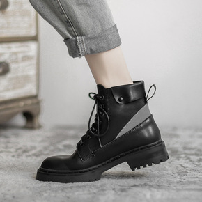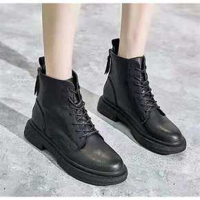 时尚2021秋冬新款网红百搭英伦风软皮短靴厚底帅气...