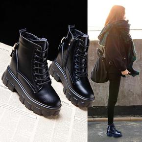 2021秋季新款12cm内增高女鞋厚底高跟马丁靴女...